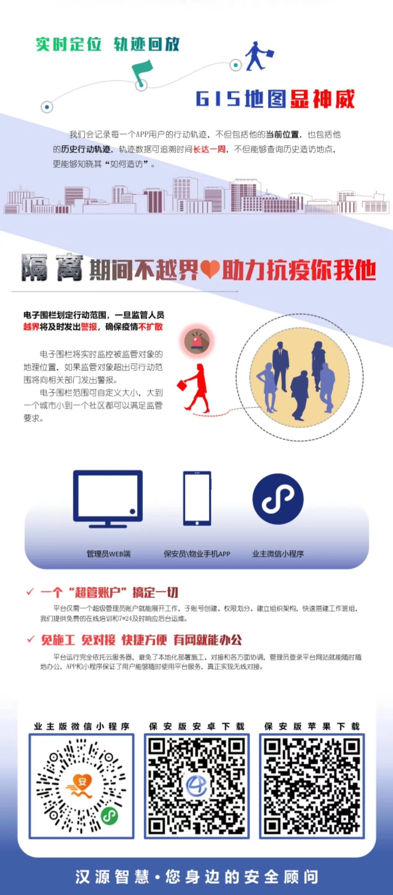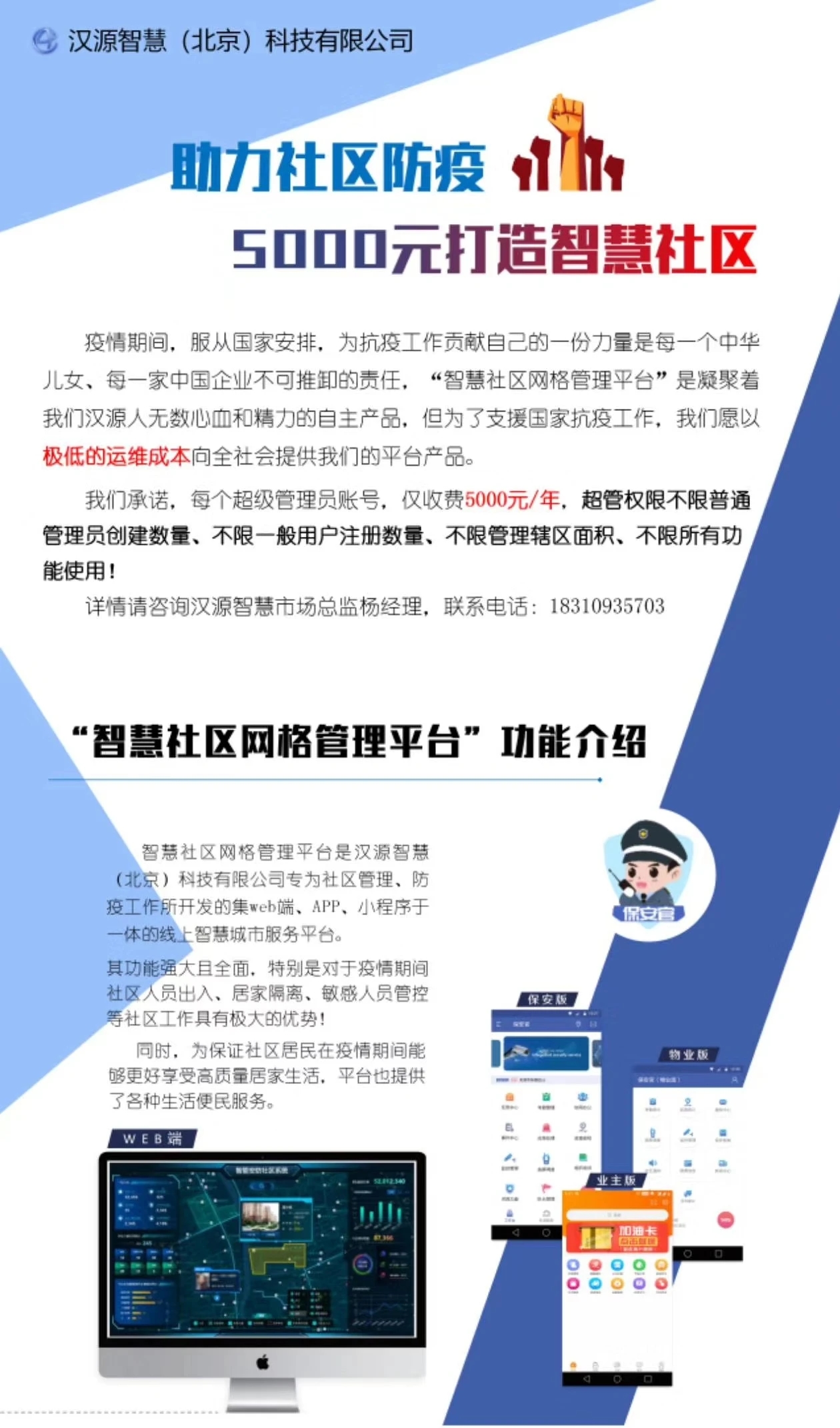 疫情期間,服從國家安排,為抗疫工作貢獻自己的一份力量是每一個中華兒女、每一家中國企業(yè)不可推卸的責任,“智慧社區(qū)網格管理平臺”是凝聚著我們漢源人無數心血和精力的自主產品,但為了支援國家抗疫工作,我們愿以極低的運維成本向全社會提供我們的平臺產品。