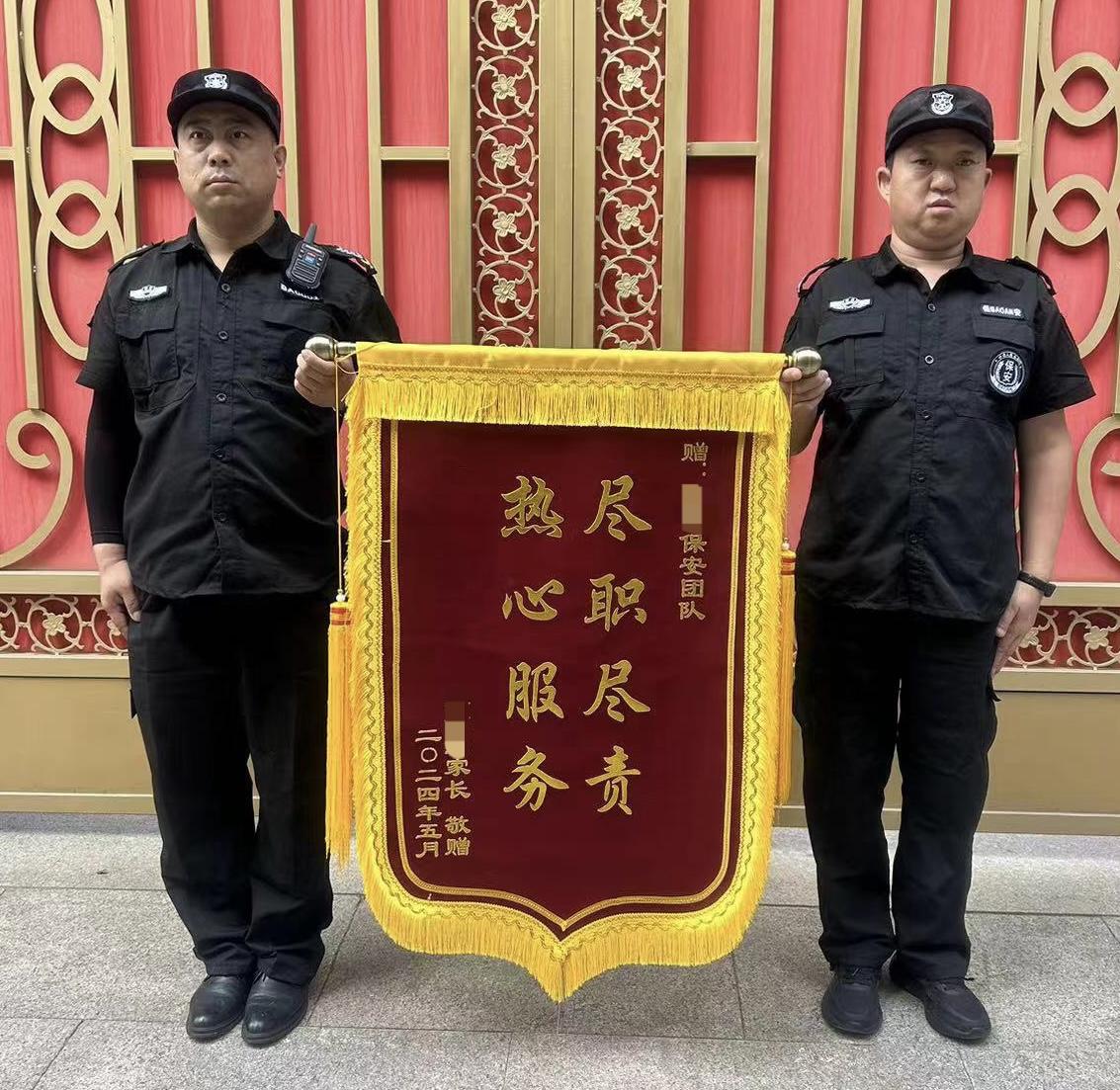 據(jù)了解,事發(fā)當天早上上學時段,小學生姜某在校門口附近不慎將自己的水杯掉落至馬路中央。由于當時正值交通高峰期,車流不息,姜某在試圖穿越馬路撿拾水杯時,險些被過往車輛撞到。危急時刻,學校門口執(zhí)勤保安員侯磊、崔曉波發(fā)現(xiàn)了這一幕,他們意識到事態(tài)的嚴重性,迅速沖上前去,將姜某拉到路邊安全地帶,同時,他們還向過往車輛示意,確保交通秩序不受影響。當姜某的家長得知此事后,對保安員侯磊、崔曉波的英勇行為表示了由衷的敬佩和感激。他們特地制作了一面錦旗,上面寫著“盡職盡責、熱心服務”,并親自送到學校向侯磊、崔曉波表示謝意。