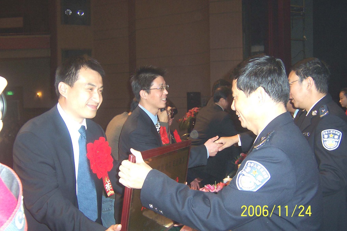 保全公司被北京市綜治委、市公安局評(píng)為“先進(jìn)單位”。左一為保全公司董事長(zhǎng)孫風(fēng)雨