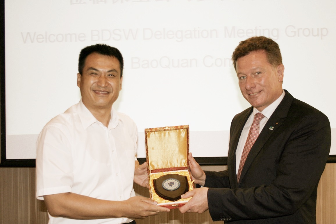 保全公司董事長(zhǎng)孫風(fēng)雨向德國(guó)保安協(xié)會(huì)贈(zèng)送禮品